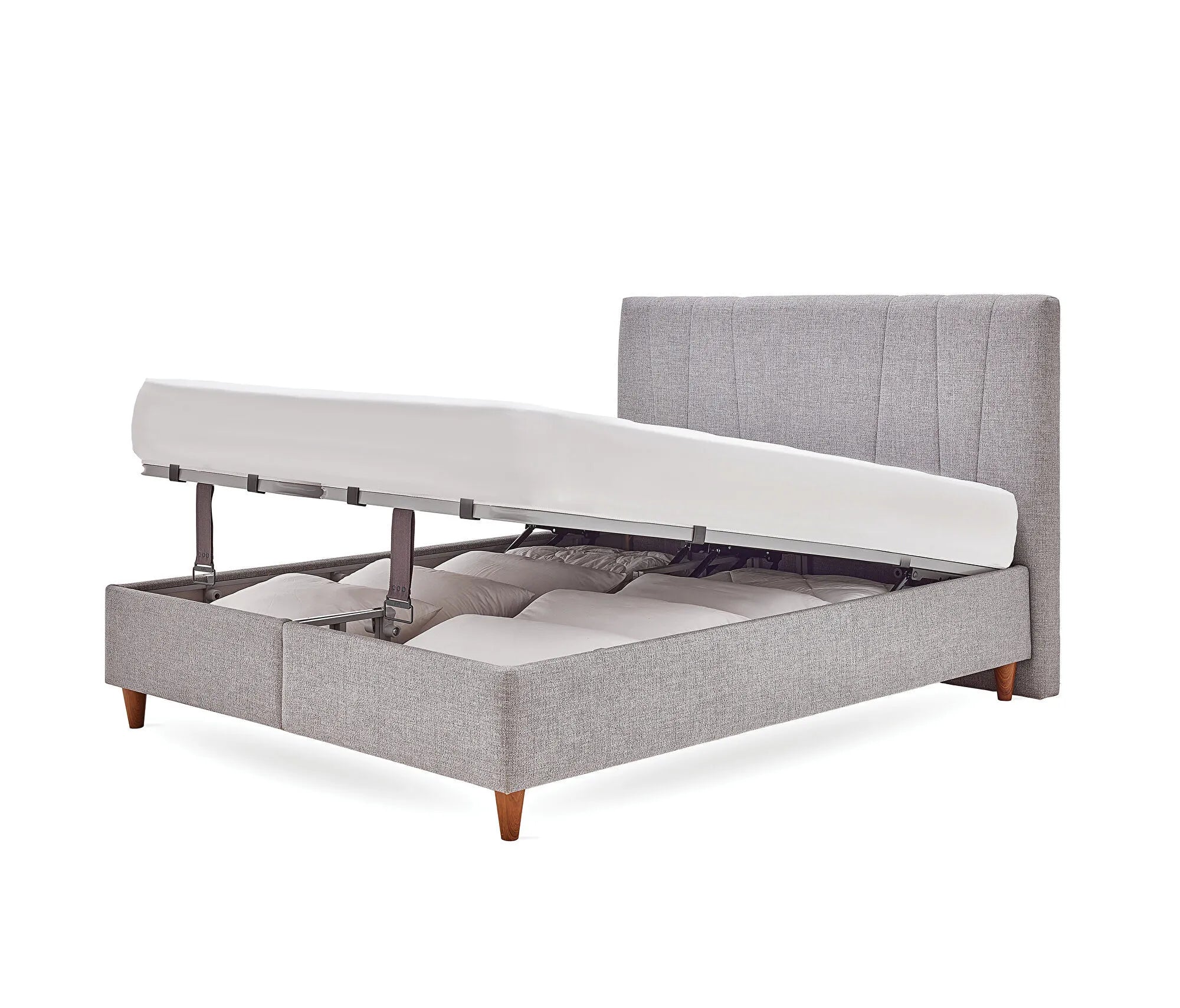 A Vien-Vera franciaágy, 12 cm-es lábmagasságával könnyű tisztítást tesz lehetővé és alkalmas robotporszívóval történő használatra. Nagy belső térfogatával extra tárolóhelyet kínál. Acél vázával hosszú éveken át megőrzi masszivitását. Letisztult és harmonikus dizájnjának köszönhetően számos különböző fejvéggel használható, és illeszkedik a szobájához.